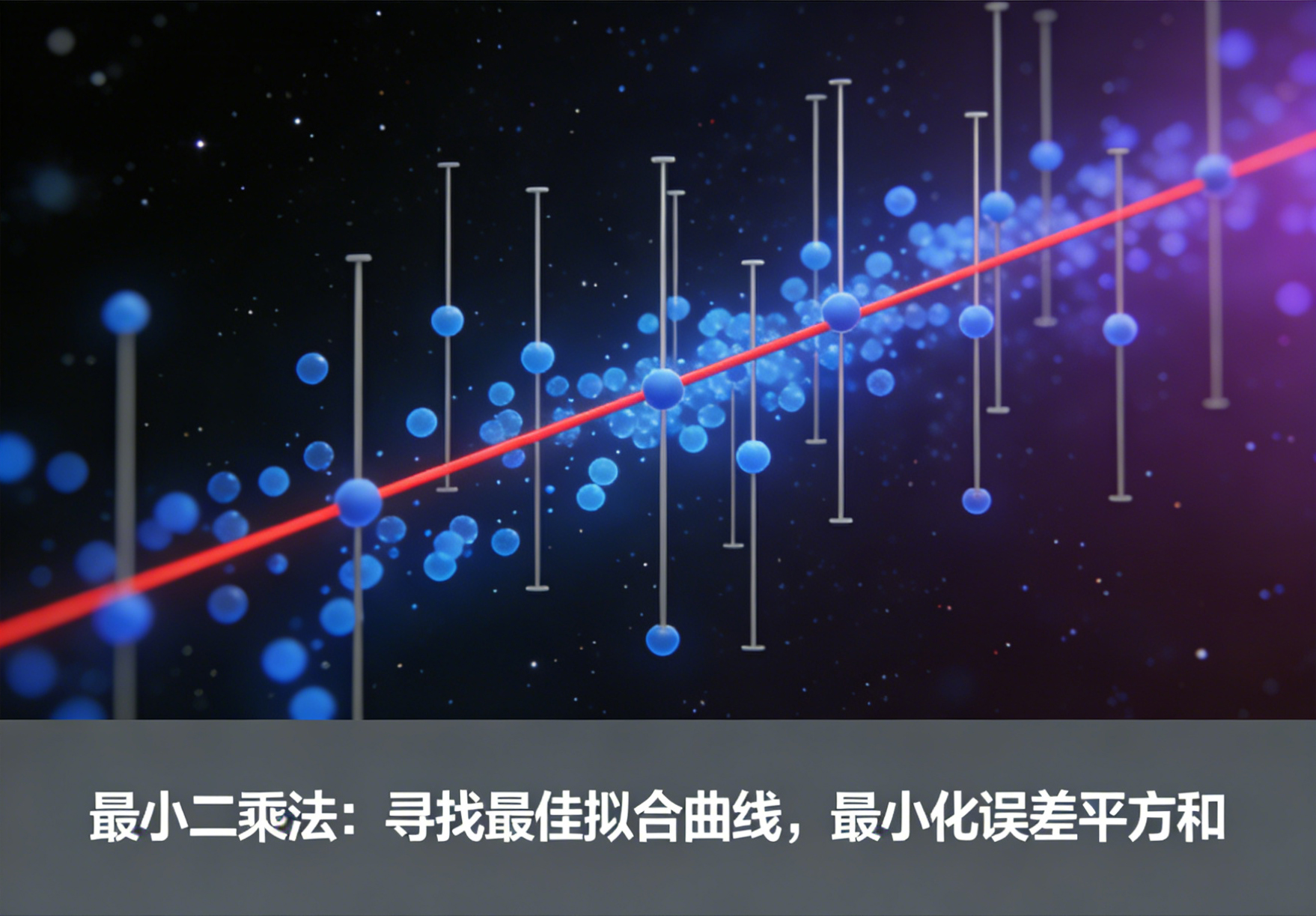 最小二乘法是一种数学优化技术,它通过最小化误差的平方和来寻找数据的最佳函数匹配。简单来说,就是在散点中画出一条线(或曲线),让所有点到这条线的距离(误差)的平方和最小。