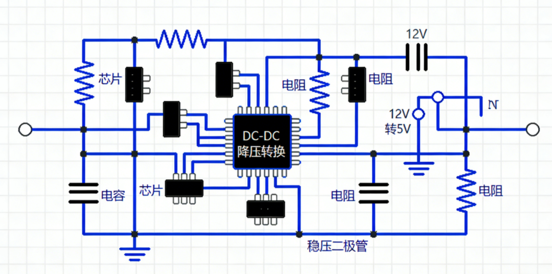 1. 功率守恒定理:电源转换中“输入功率≈输出功率+损耗功率”,这一定理决定了DC-DC转换的效率设计,我们的方案选用高效降压芯片,将转换损耗控制在极低范围,减少发热,为无风扇散热打下基础。